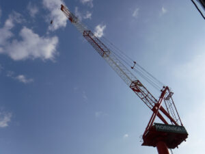 タワークレーンとは、敷地が狭い都市部や高層マンションなどで重い荷物を吊上げたり、移動させるのに欠かせない建設機械のひとつです。