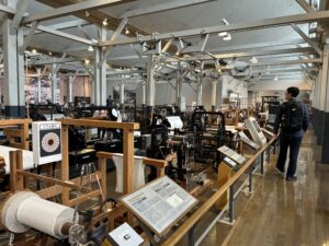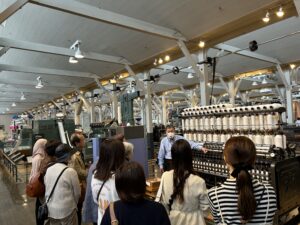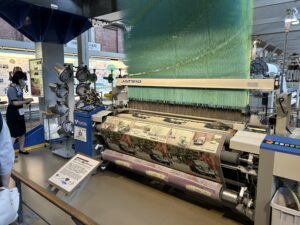 手作業から始まり、やがて自動織機へと進化していく過程を実際の機械で見学する事が出来ました。