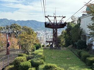 松山城本丸は標高132mの山頂にあるため、歩いて登るのは大変です。