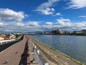 以前から走ってみたかった大和川サイクリングロードなので、少しテンションが上がります。