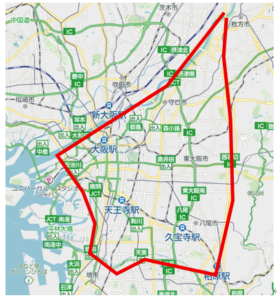 大げさな前置きだったかもしれませんが、簡単な発想で、淀川と大和川に囲まれた範囲を一周しようと考えただけです。