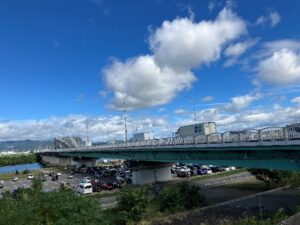 国道43号線でもあるこの橋は、淀川を渡ることができる最西端の橋です。