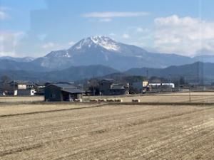 新快速電車の車窓から眺める伊吹山はとても美しく、思わずカメラを向けました。