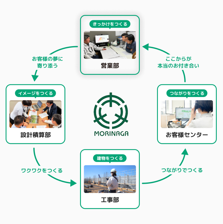 “対話”を重視する営業部の体制が、 最終的なお客様の“満足”を支える土台となります。
