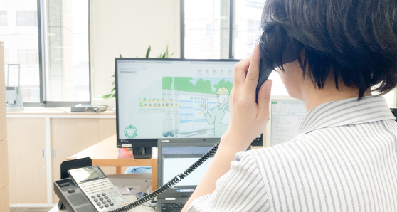 建物引き渡し後のメンテナンスを担当するのが、お客様センターです。状況に応じて営業担当者や工事担当者が補助として対応にあたります。
